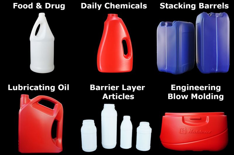 Gelä Ufige Anwendungen sind Nahrungsmittel-und Droge-Verpacken, Tä Gliches chemische Produkt-Verpacken,   Chemikalie, die das Zylinder-Verpacken stapelt, Kraftfahrzeugmotor-Ö L-Verpacken, Dampfsperrenartikelund Technik-Blasformen.